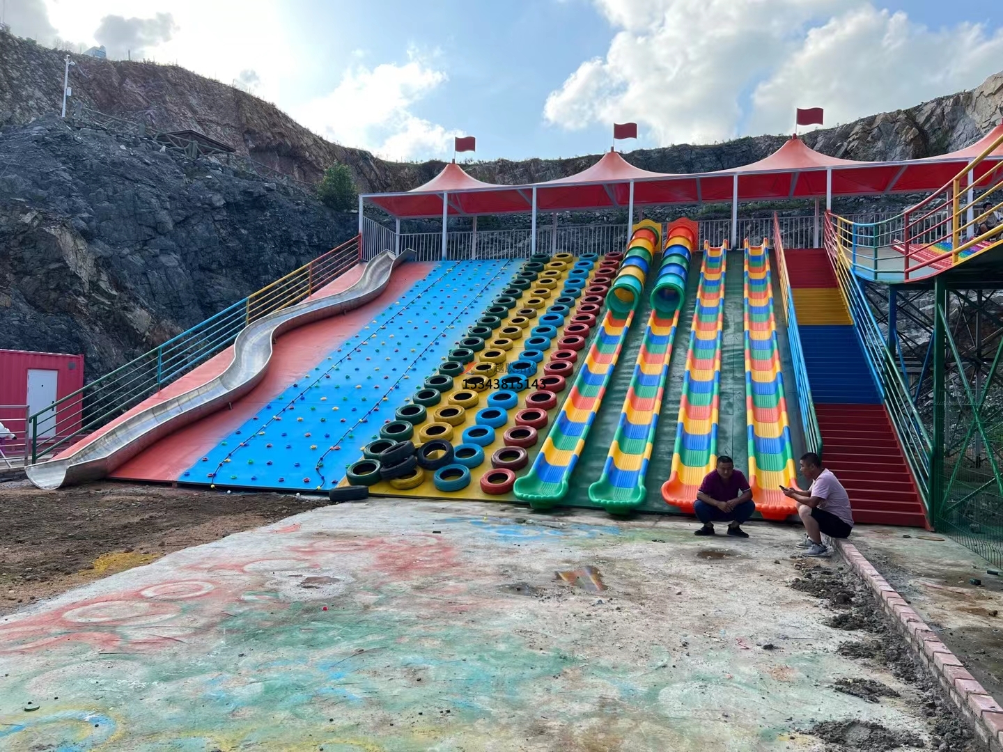 鄭州彩虹滑道游樂(lè)設(shè)備紅色遮陽(yáng)棚結(jié)構(gòu)設(shè)計(jì)生產(chǎn)