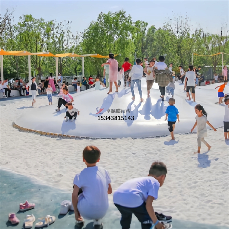 與傳統式蹦蹦床相比,卓越膜結構公司的蹦蹦云可根據使用需求自由設計彈跳面的弧度與形狀,實現多種造型和異形結構的設計,豐富的外觀造型帶來更強的美觀性和趣味性。