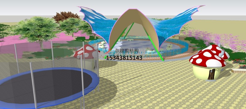 3:簡易拆卸,移動和可以更換性能,游樂園的建筑和其他項目建筑的很大不同是,游樂園需要定期或者不定期做一些改造或者調整,這樣游客才會重復來玩。膜結構恰好能滿足這一點,比如,同樣是一個休息亭,換個顏色,或者換個造型,只需要增加或者減少局部的鋼結構桿件,換一塊膜就可以搞定,傳統的結構是沒辦法實現的。