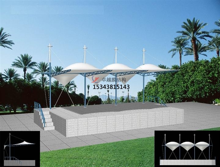 藝術性:除了一般雨蓬不可比擬的實用、耐用、遮風擋雨的功能外,膜結構雨蓬更是一座雕塑,一件藝術品,給人美的視覺享受。其柔美,其曲線,其剛柔并濟,其豐富造型,其潔白無瑕,讓人眼前一亮,回味悠長。