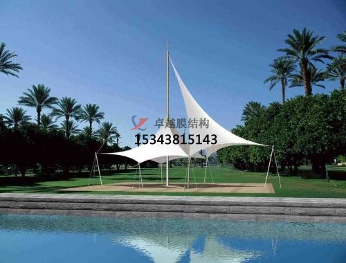 pvc膜材由聚氯乙烯(pvc)涂層和聚酯纖維基層復合而成,應用廣泛,價格適中。一般pvc膜的耐用年限,依使用環境不同在10~12年。為了改善pvc膜材的耐侯性,近年來已研發出以氟素系樹脂在pvc涂層材的表面再作處理,以改善其耐侯性及防污性的新膜材。