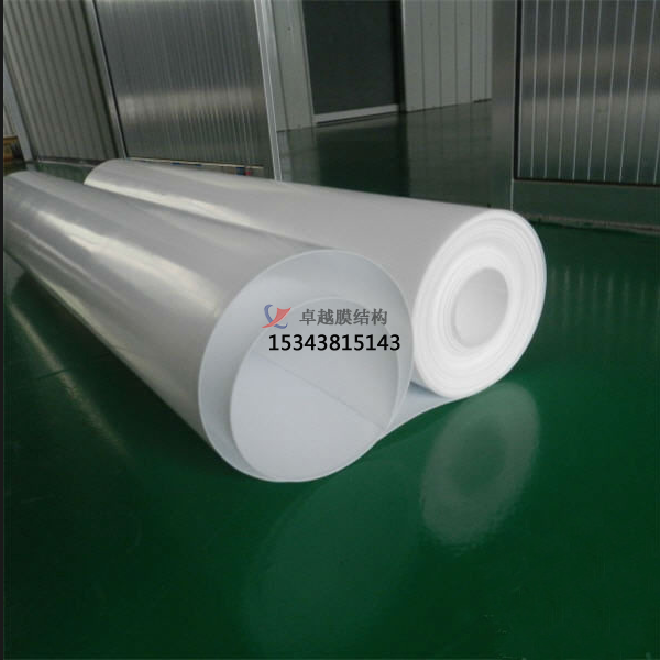 強度高:中等強度的PTFE膜厚度僅0.8mm,但拉伸強度已達到鋼材的水平;而且彈性模量較低,有利于膜材形成復雜的曲面造型。