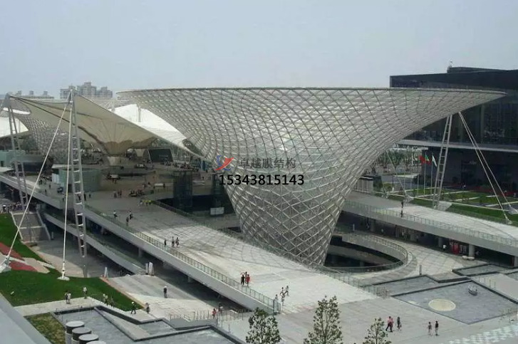 1、玉樹PTFE膜結構具有強度高、耐久性好、防火難燃、自潔性好、不受紫外線影響且自重輕等優點。事先在工廠進行裁斷熔接后在現場安裝即可,可以縮短建設工期。