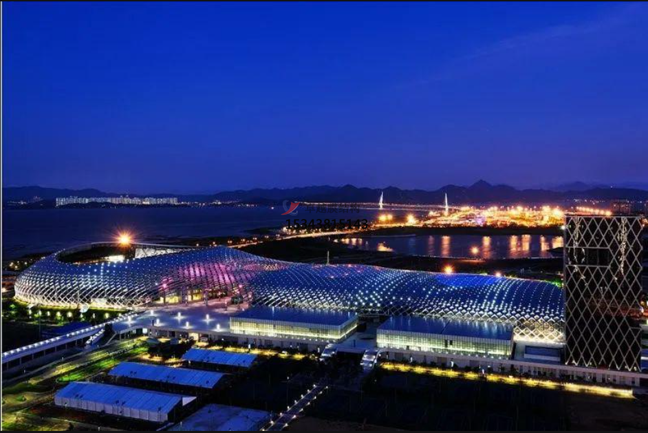 網(wǎng)格膜在外立面的應(yīng)用越來(lái)越普遍,惠州市中心體育場(chǎng)是國(guó)內(nèi)第一個(gè)立面大面積采用網(wǎng)格膜的體育場(chǎng),是舉辦2010年第十三屆省運(yùn)會(huì)的主會(huì)場(chǎng),屋面采用了PTFE外膜,約3萬(wàn)多平米。立面采用了PTFE網(wǎng)格膜,約2萬(wàn)多平米,去營(yíng)造一種金屬質(zhì)感的折板效果。不僅作為外部的圍護(hù)結(jié)構(gòu),還豐富了整體的立面效果,扭轉(zhuǎn)單元與平面單元的結(jié)合,使得整個(gè)屋面更加富有動(dòng)感,而且網(wǎng)格膜作為L(zhǎng)ED光的載體。