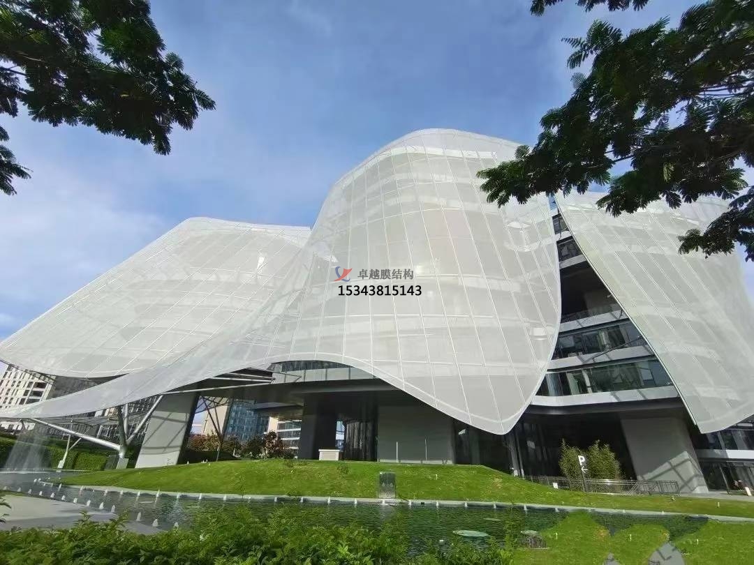 遮陽設施:在公園、廣場、酒店庭院等場所,PTFE 網(wǎng)格膜常被用于搭建遮陽棚、遮陽傘等設施。其良好的遮陽效果和耐候性,能為人們提供舒適的戶外休息空間,同時其可定制的造型也能與周圍環(huán)境相融合,成為景觀的一部分。