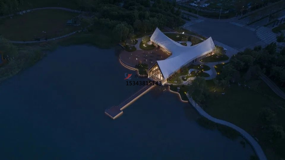設計采用了新型鋼木組合結構,工廠預制,建造便捷,縮短工期。屋頂使用的是白色PVDF膜材,通過張拉性能實現三維屋面造型,勾勒出流暢的屋脊線,強化建筑簡潔、干凈的形體美感。