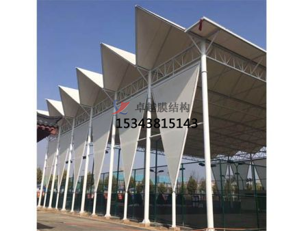 在安裝過程中,需要注意控制膜材料的張力和位置,保證其均勻分布和穩定支撐。同時,還需要進行節點連接和加固,整個罩棚的穩定性和安全性。最后,需要進行驗收和保養,保證膜結構的長期使用和維護。