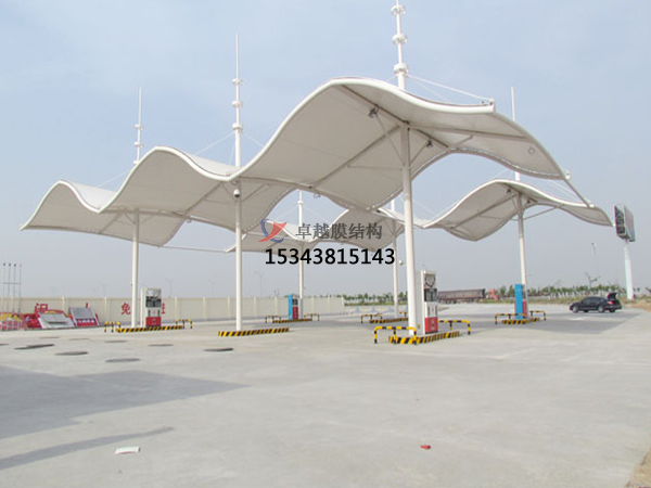 1、PVC膜結構材料成本較低,是采用聚酯纖維作為基材,其做出的膜結構加油站罩棚可以使用7-15年;