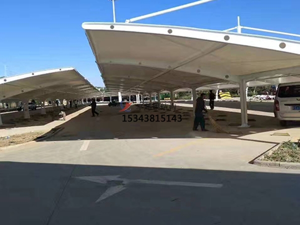 膜結構車棚產品造型優美、飄逸自然、融藝術、力學于一體,同時具有遮陽、擋雨、實用、美觀的作用;廣泛適用社區、學校、商業、體育館、工廠、政府機構等露天停車場。