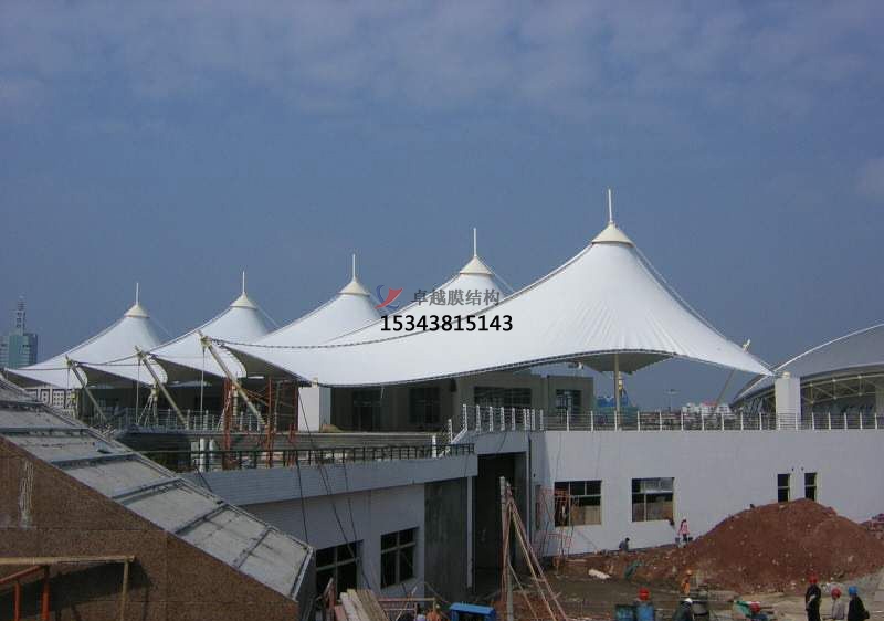景觀膜結(jié)構(gòu)遮陽棚加工制作主要加工流程包括:進料→檢驗膜材→圖紙技術(shù)會審→膜片下料、編號→膜片編排放樣→膜片初拼→高頻駁接→包裝。由于膜材的裁剪、包裝過程都較為復雜,各種角度變化較多,且加工精度要求非常高,所以在制作過程中要加強質(zhì)量管理,保證制作精度。加工時的注意事項有: