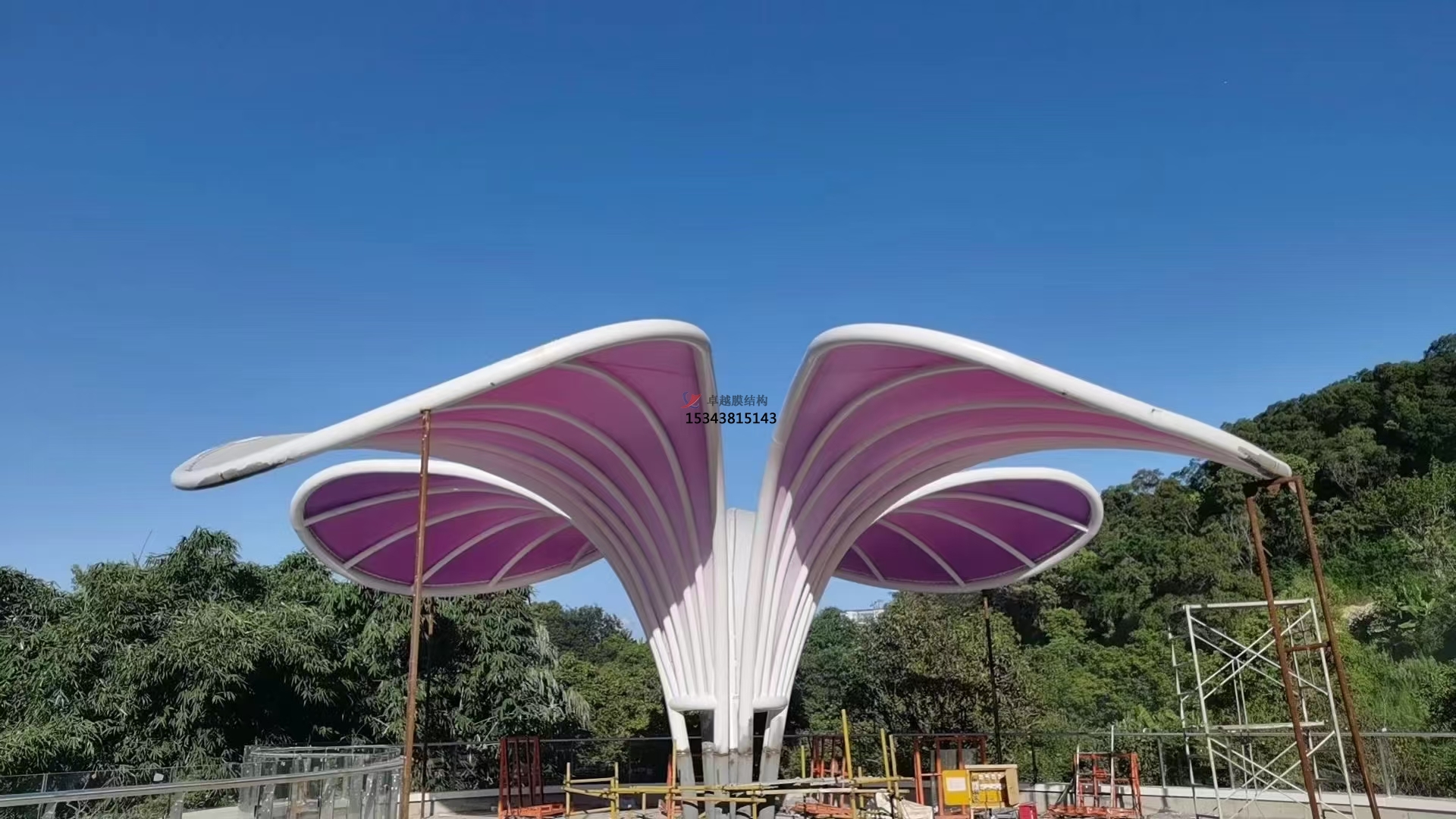 色彩是景觀膜結構設計的關鍵要素。膜材本身提供了豐富的色彩選項,且能依據不同景觀環境與設計主題靈活調配。在自然景觀主導的公園或郊外景區,常選用米白、淺藍等柔和色調,使之與自然景色相融,營造寧靜和諧的氛圍。