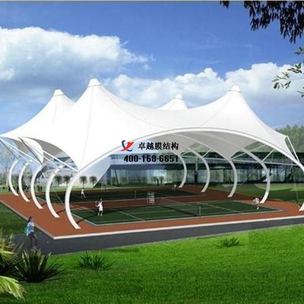 網球場膜結構選用膜材料的好處:因為膜材料自重輕,具有良好的受力特點——成為大跨度空間結構的主要形式之一。網球場膜結構建設成為現代城市規劃的重要組成部分,變的越來越重要。膜結構輕巧、別致的造型在網球場、籃球場和門球場的建設中擔當了重要角色,除了滿足防風雨、防日曬等基本功能外,并有較好的標識招攬效果,展現了人們個性化的一面。