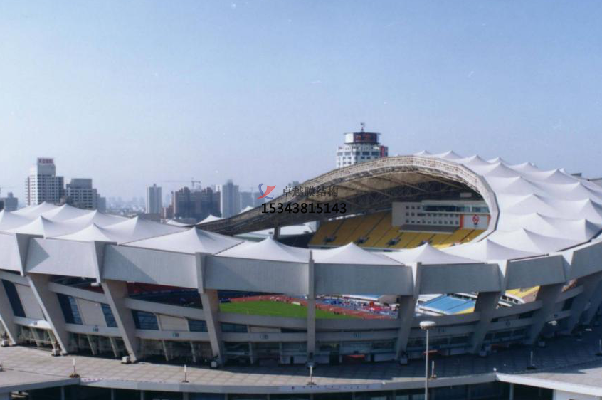 骨架式膜結(jié)構(gòu)是由自身安穩(wěn)的骨架系統(tǒng)和膜體構(gòu)成,骨架系統(tǒng)決定修建形體,膜體為掩蓋物。骨架式膜結(jié)構(gòu)的顯著特色在于:膜不是保持結(jié)構(gòu)系統(tǒng)存在的必要結(jié)構(gòu)單元,又不僅僅是單純的掩蓋屋面系,而是充分發(fā)揮了采光修建功能和高強度受力特性。骨架式膜結(jié)構(gòu)是膜結(jié)構(gòu)工程中運用較多的一種方式。