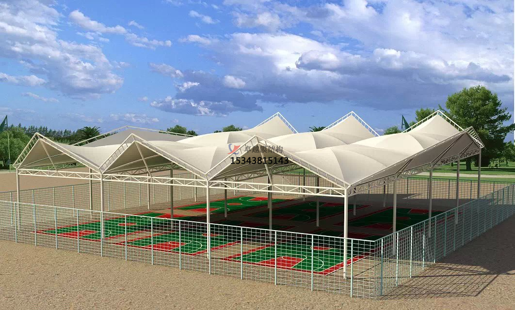 商丘網球場膜結構雨棚通常由多層聚酯薄膜" />