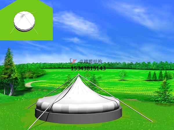 2、吉林寶源玻璃鋼化工藝廠污水池處理池膜結構封閉反吊膜