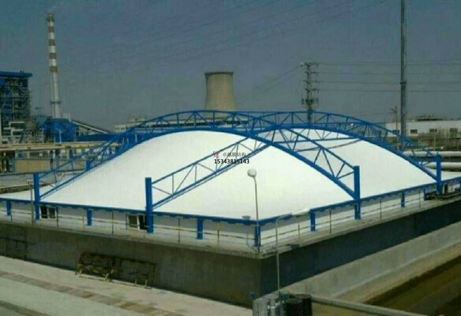 工程結構形式:四周硬邊式膜結構污水池加蓋