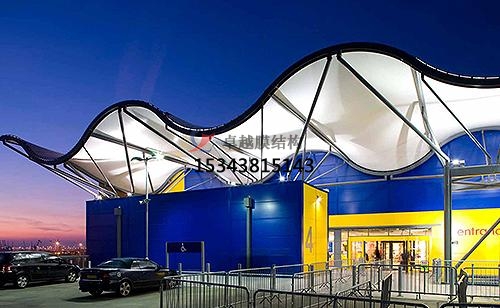 膜結構景觀停車棚除前面所述外, 膜結構景觀與其它結構配合發展的空間很大, 會使建筑結構形式變化更多、更新。膜結構景觀需要大量迭代計算, 而且要考慮非線性因素, 只有隨著計算機才能完成。它是一種全新的建筑結構形式, 它的結構形式的美蘊含著技術和藝術美。