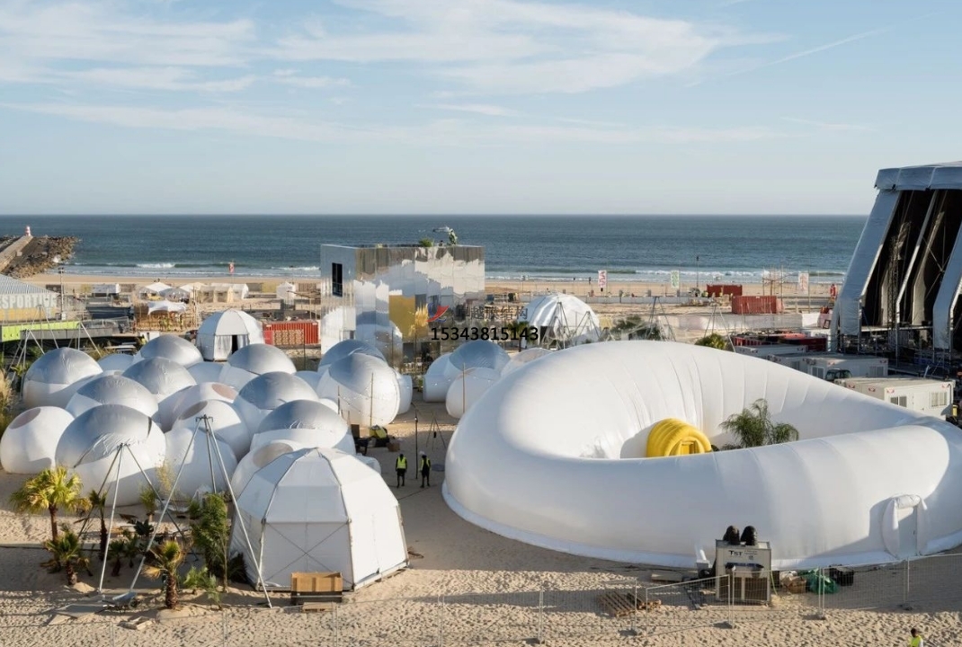 充氣式膜結構憑借內部氣壓的支撐,塑造出別具一格的形態,廣泛運用于臨時性景觀設施以及主題公園中的特色建筑,例如充氣城堡與充氣展覽館。憑借其獨特的外觀與便捷的搭建特點,這些結構成為吸引公眾目光的亮點,為景觀空間增添了活潑與歡樂的氣氛。