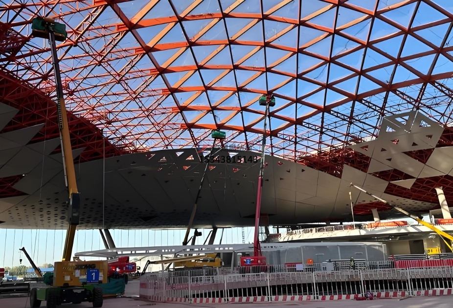 臨沂啟陽機場在航站樓改擴建及附屬工程中,大膽采用了 ETFE 膜結構,成為國內航站樓中首個大面積投入運用該技術的項目。其主體修建頂部 ETFE 氣枕膜結構總面積約 6080 平方米,由 518 個采用 ETFE 三層等邊三角形通明氣枕構成,每個氣枕均勻面積約 12 平方米,并通過鋁合金結構作 “米” 字型固定。ETFE 膜作為一種輕質、透光、強度高、耐摩擦、耐腐蝕、耐高溫的薄膜,每平方米僅 1 千克左右,極大地降低了修建整體分量,有用削減了荷載。一起,它不受紫外線、環境污染等影響,能接受極點天氣和天然災害帶來的晦氣情況。在防火性能上,ETFE 膜可防火且具自熄性,在火情中會自動熔斷,僅保留一條邊,既能確保濃煙順暢排放,又不會發生焚燒滴落物,真實完成了節能、環保、抗壓、經用的完美融合,為臨沂啟陽機場航站樓增添了濃墨重彩又文藝浪漫的一筆。