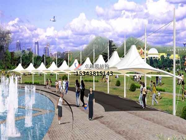 一個城市的中心區反映一個城市的地理風貌和民族風情,同時,也是一個城市文化發展程度的標志。而景觀設計要求其具有廣泛的可讀性、雅俗共賞,既有超凡脫俗的藝術價值,又能使大眾喜聞樂見與大眾息息相通。膜結構以其輕盈飄逸的造型、柔美并帶有力量的曲線和大跨度和大空間的鮮明個性和標識性,應用于城市小品設計中。