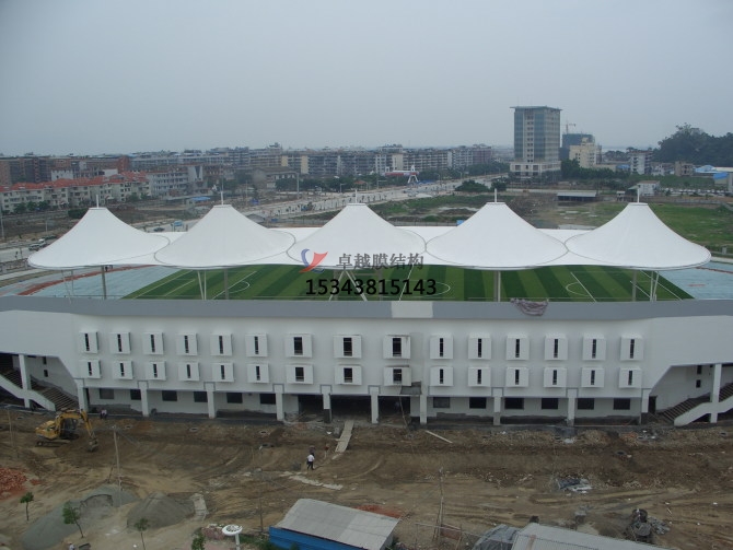 膜結構遮陽棚工程中所有加工和制作依設計均可在工廠內完成,在現場只進行安裝作業。相比傳統建筑的施工周期,它幾乎要快一倍。