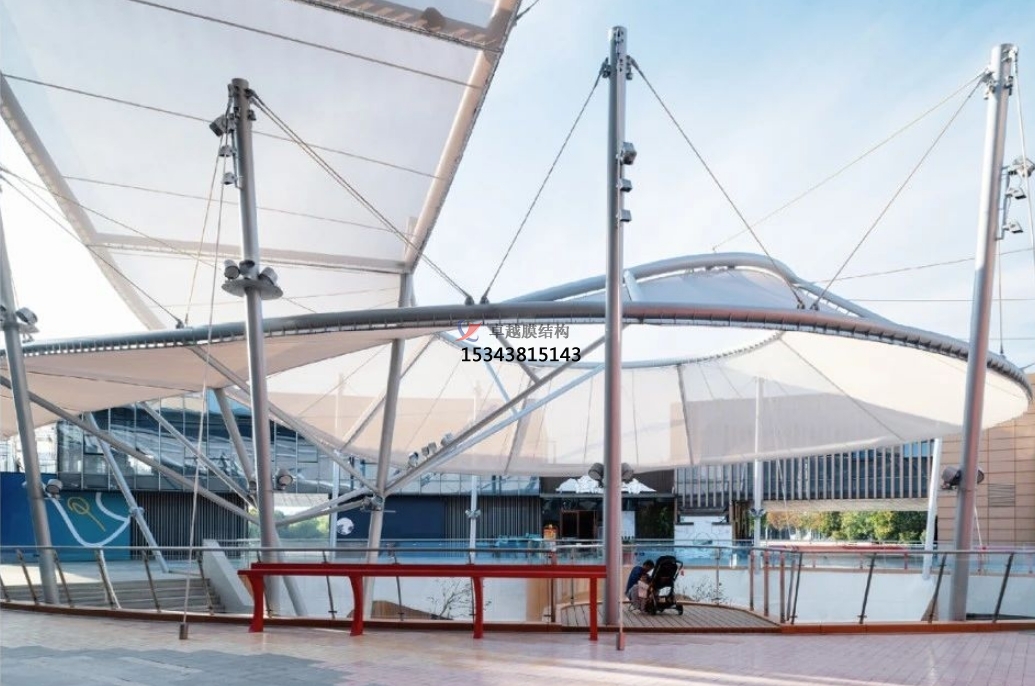 索膜結構,顧名思義,是由高強度柔性薄膜材料與其他材料(如鋼索、鋼結構支柱等)共同作用而形成的一種穩定的空間結構形式。其最大的特點在于造型自由、輕巧、柔美,能夠創造出各種優美的曲面造型,給人以強烈的視覺沖擊力。此外,索膜結構還具有阻燃、制作簡易、安裝快捷、節能、易于維護以及使用安全等優點,這些特點使得它在世界各地得到了廣泛的應用。