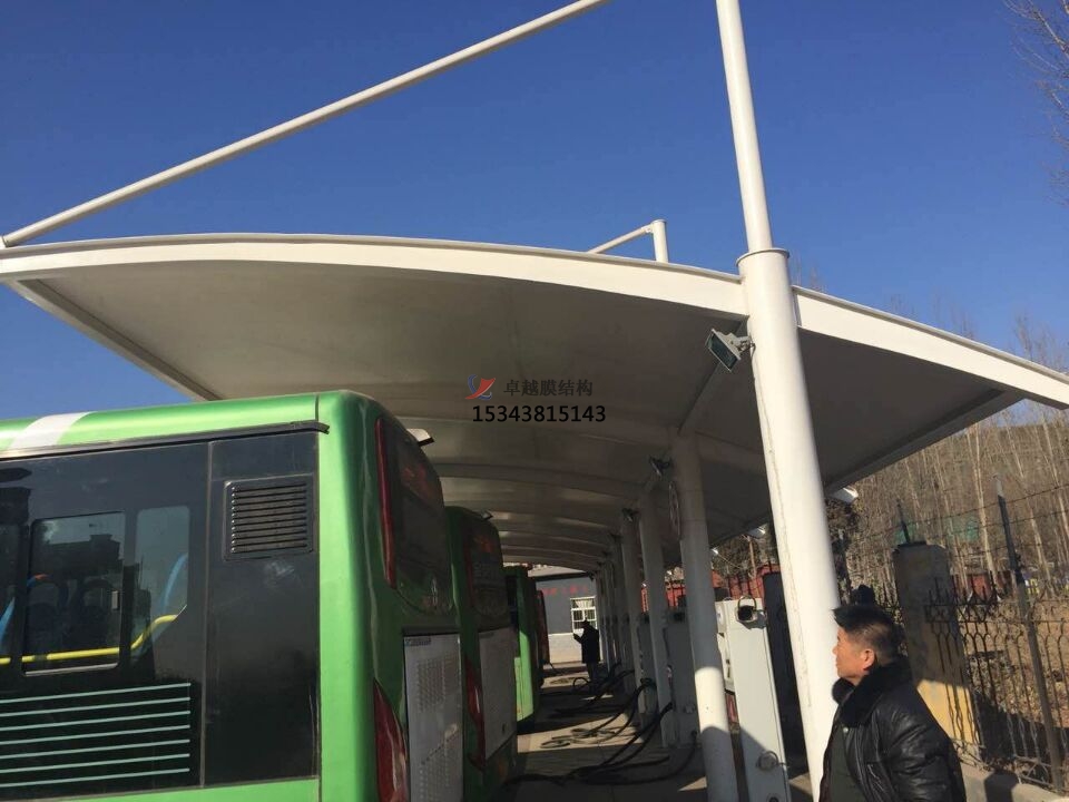 膜結構小轎車充電樁停車棚雨棚是最近幾年才流行起來的,因為電動小轎車有大型的充電樁,為了充電的安全,就有了膜結構小轎車充電樁停車棚雨棚。