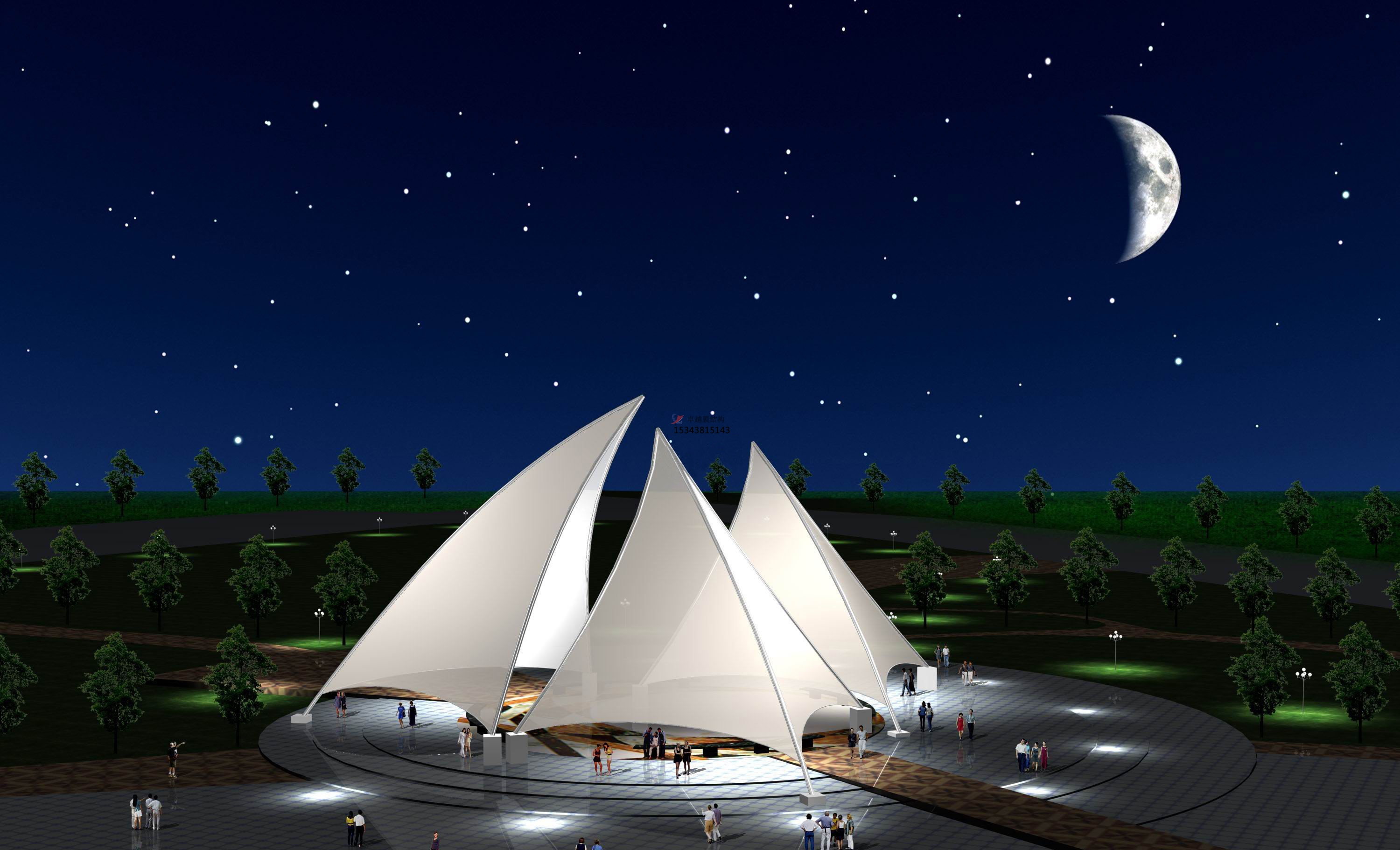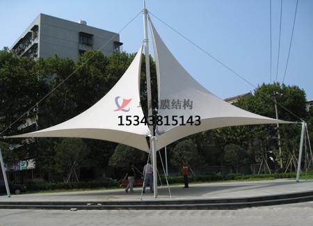 3.膜結構景觀工程使用同一批號的膜材。保證膜材表面應無針孔,無明顯褶皺和明顯污漬,不應出現斷絲、裂縫和破損等,色澤應無明顯差異。