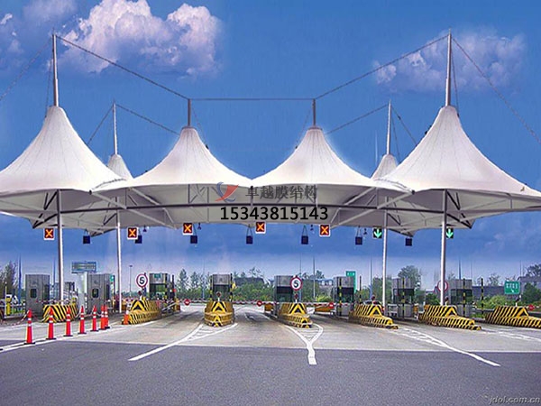 每逢過年過節回家上高速時總要經過一個個收費站,現在的收費站改變也很大,不再是簡易老土的。慢慢的收費站頂棚也開始使用膜結構來設計建造,外形上也變得高尚起來。由于膜結構功能上優點眾多,所以收費站膜結構頂棚運用的也越來越多了。