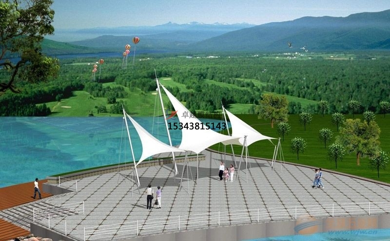 張拉膜景觀是一種建筑與結構完美結合的結構體系;它是用高強度柔性薄膜材料與支撐體系相結合形成具有一定剛度的穩定曲面,能承受一定外荷載的空間結構形式;這種結構形式特別適用于大型體育場館、人口廊道、小品、公眾休閑娛樂廣場、展覽會場、購物中心等領域。