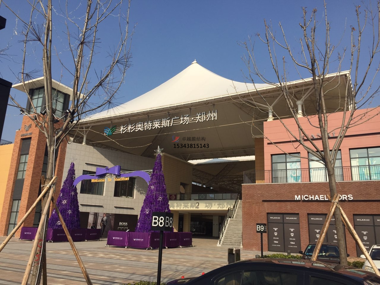 利用膜結構輕巧,別致的造型建造各種半封閉,全封閉的空間,使其形成全天候的建筑空間,提供防風雨,防日曬等人工環境,并有較好的廣告標識效果,因此是步行街改造和新建的絕佳選擇。