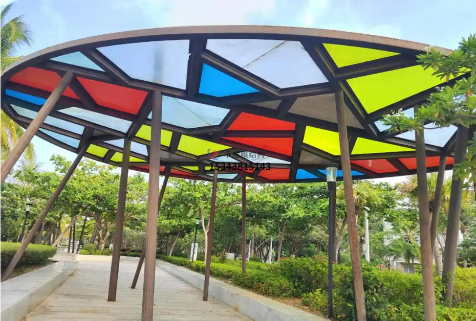 在實際應用中,PVDF膜材常常被用于各類膜結構屋頂,遮陽棚停車棚等場景。在炎熱地區采用PVDF膜布建造的停車棚不僅能有效阻擋陽光直射,降低車內溫度還能通過自身的反光特性減少熱輻射;而在寒冷地帶,這種材料則以其良好的保溫性能幫助建筑物節約能源成本。可以說PVDF膜布的應用場景幾乎涵蓋了所有需要柔性覆蓋材料的地方。